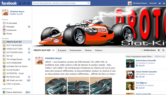 Depuis début Mars 2013, Proto-Slot-Kit est sur Facebook. Chaque jour, l'histoire mais aussi l'actualité de la marque sont commentés avec des photos et des textes inédits. Rejoignez le groupe PSK sur Facebook.