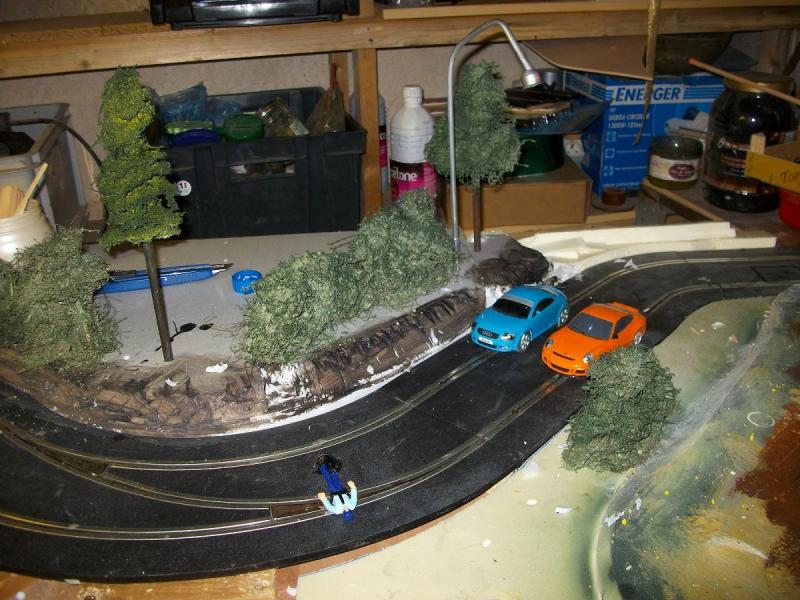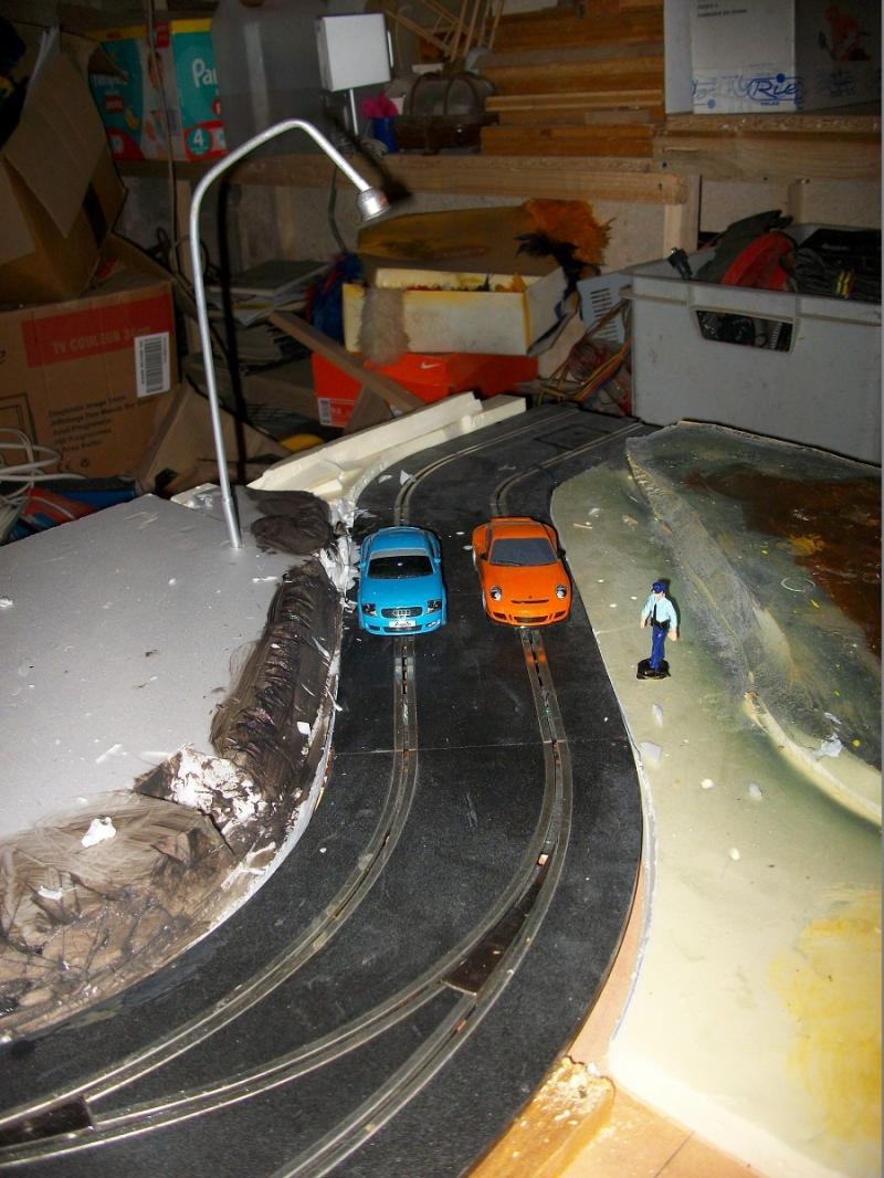 comme je l ai dis , je suis plus dans l élaboration d une piste ' sympa ' à regarder que du slot pur et dur ( difficile de vraiment faire les 2 ou alors faire une piste qui ressemble vraiment a une piste auto .. ..étudié pour cela ...je tente de faire un effet ' naturel ' avec des vaches ... des parcs ... des croisements ... des poules ... une vie ... lol )