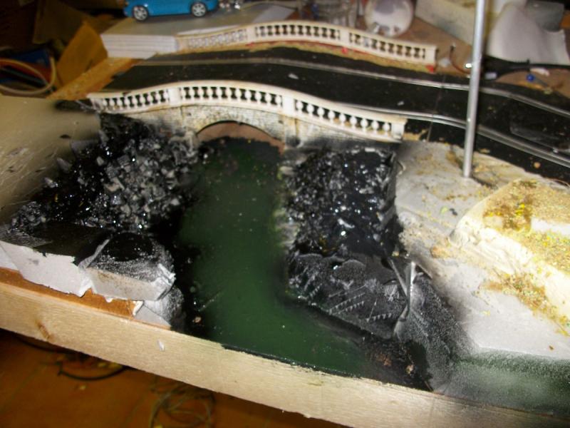 une petite rivière sous le pont ... début .. avec une première ébauche de se que je veux .. peinture finale et eau a voir plus tard