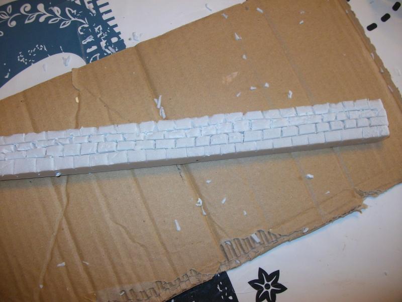 il faut que je vois un peu pour le plan d 'eau .en attendant , je vais faire une petite rambarde style vieilles pierres ,je mesure ce qu il me faut sur ma maquette !