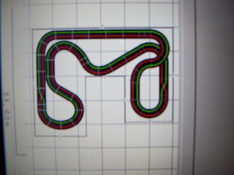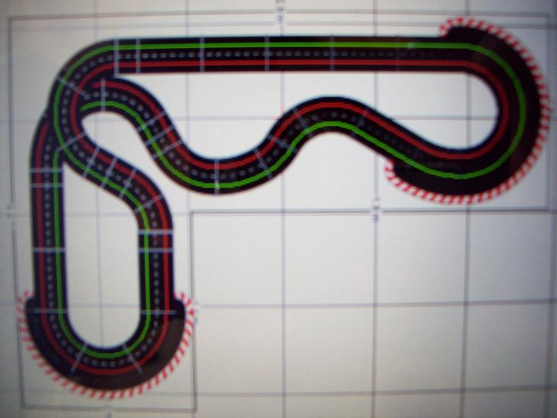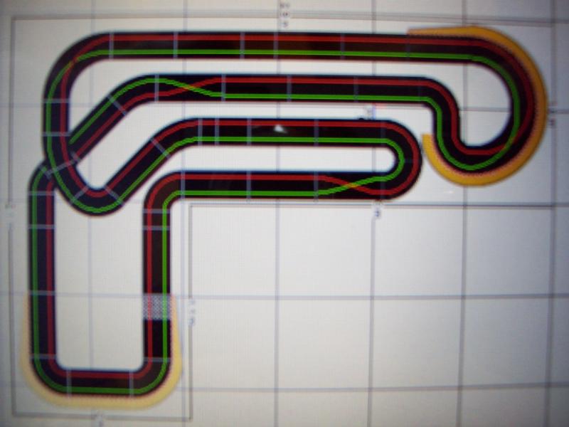 Ceci dit vu la petitesse de mon plateau (295 X 100 et retour de 110 X 100 de large) je n'ai pas 36 possibilités. Aussi j'ai esquissé deux tracés : 1 carrera de 9,11 par voie et 1 scalex de 12,56 par voie.