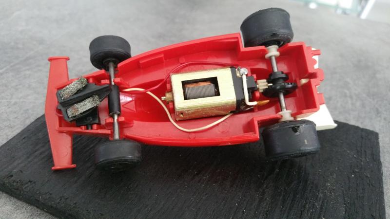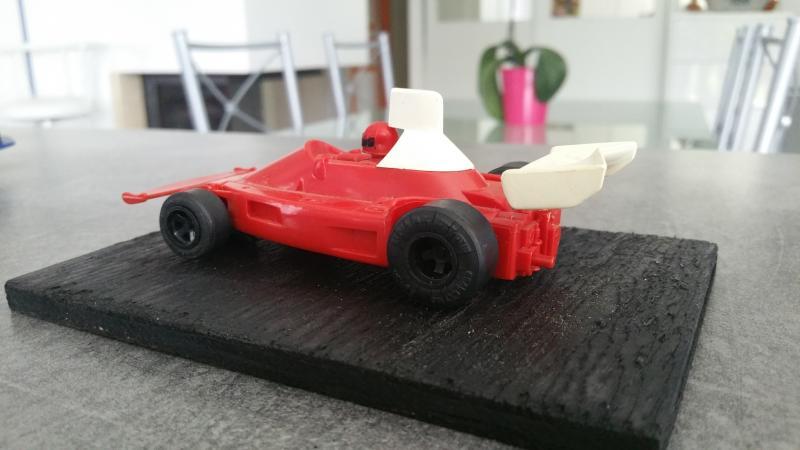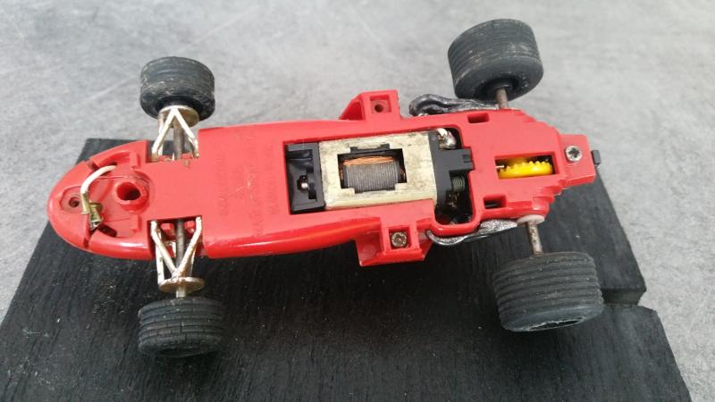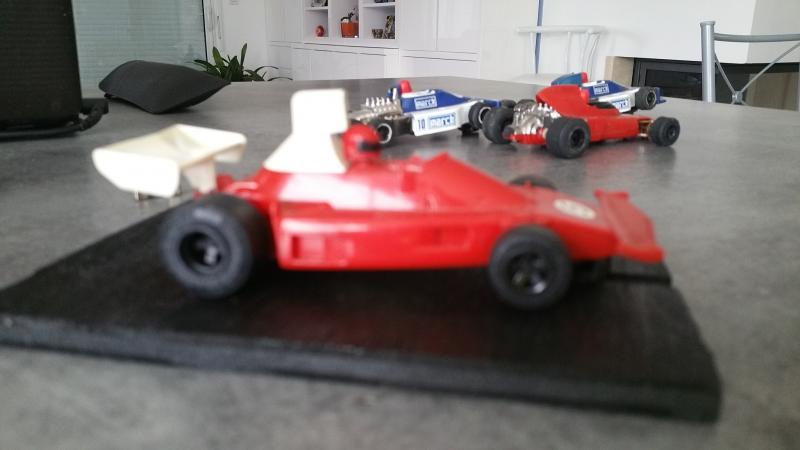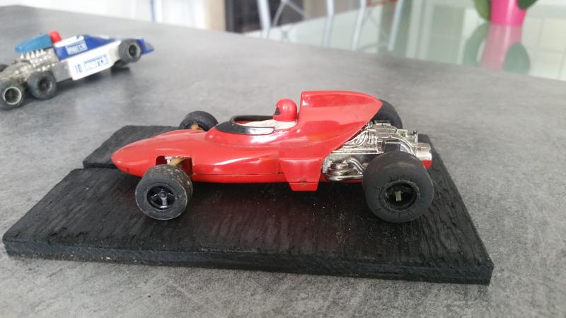Il y a aussi dans vos une scalextric avec un moteur clipsé sous la carrosserie qui représente (à peu près !) une ferrari 312 T ou T2 (il s'agit d'un modèle "bas de gamme" des scalex de l'époque; alors que les March étaient "haut de gamme")