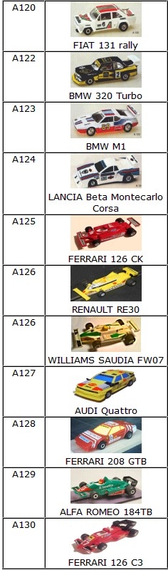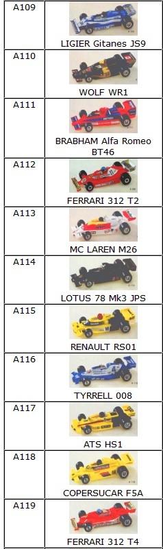 Si tu cherches des F1 il a existé une série chez Polistil série Champion 175 HP ou SHP d'une échelle aux environs de 1/35 (60mm de large).