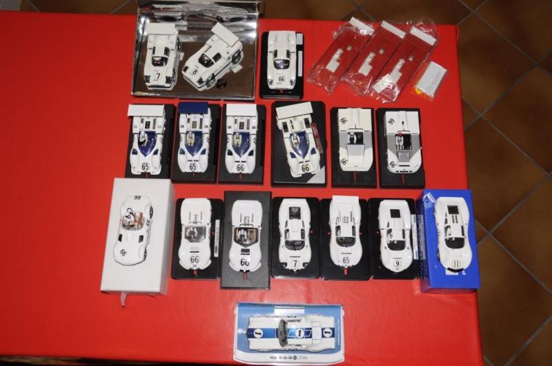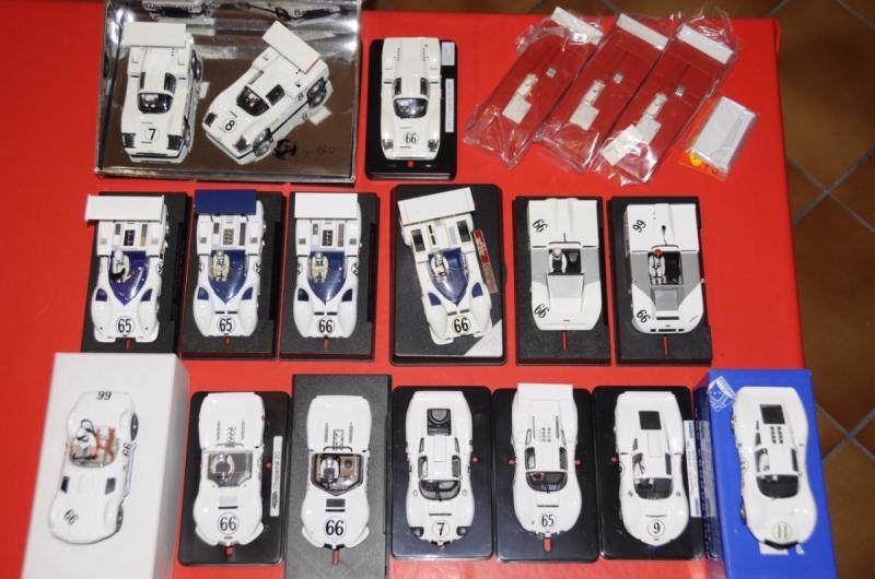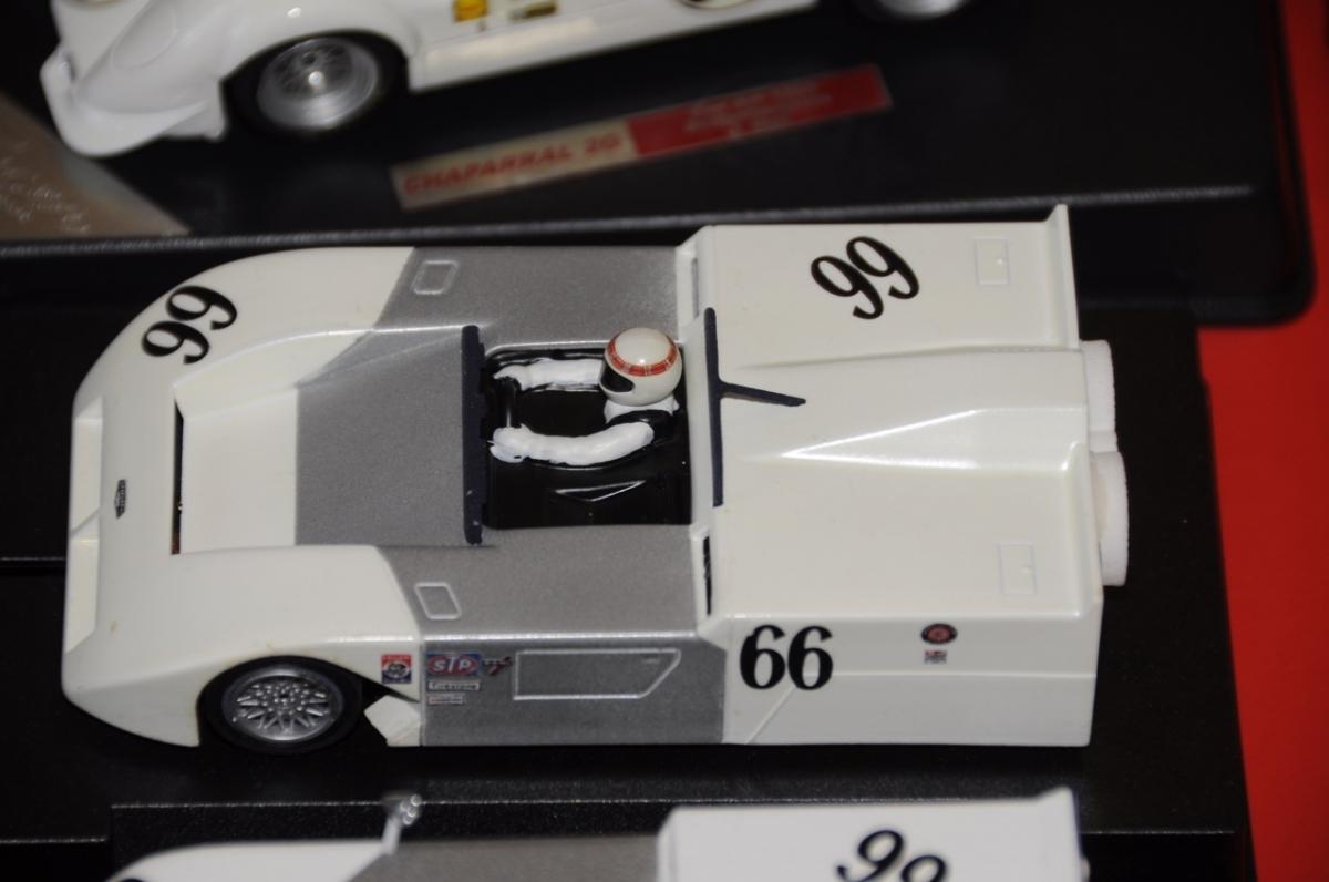 Une Chaparral 1 de PSK, quelques 2A MRRC et Revell, plusieurs 2D (Strombecker, George Turner et MMK) dont nous a parlé Marsu du temps du premier confinement (voir son très joli post), plusieurs 2E Slot.it et 2F MRRC (l'une a encore son aileron sous le socle! ) ainsi qu'une 2G Racer.