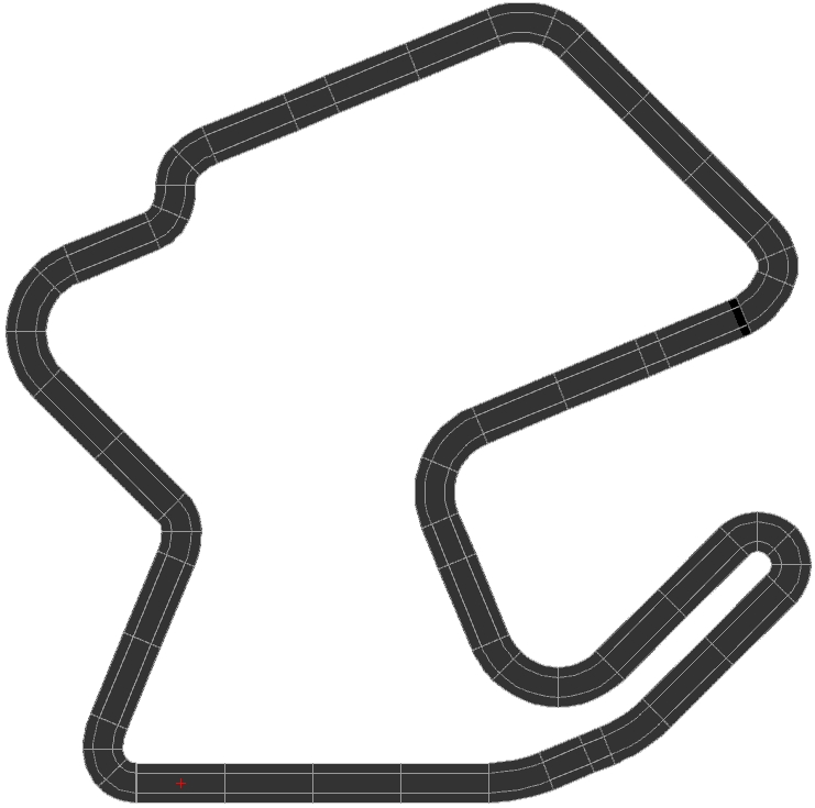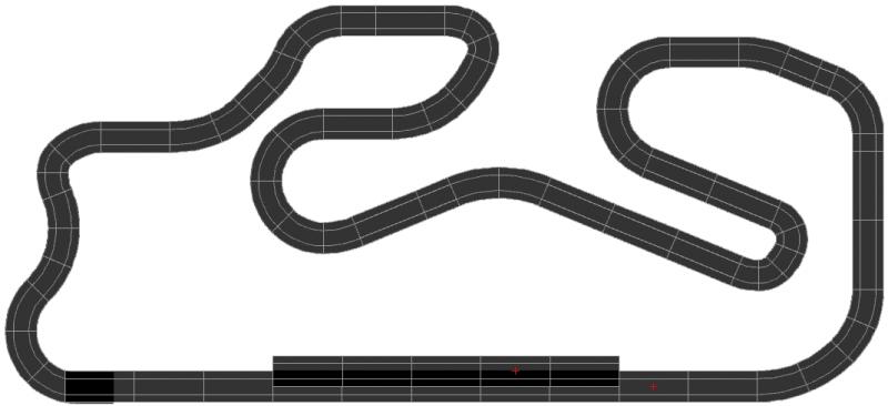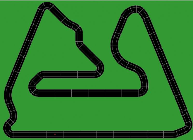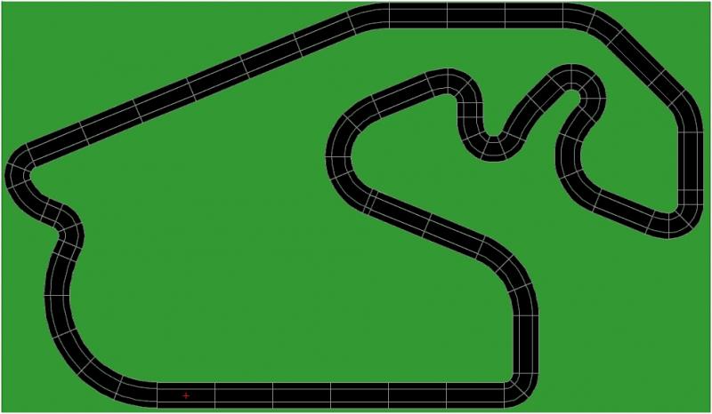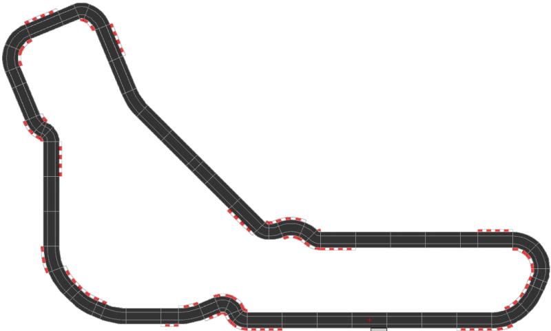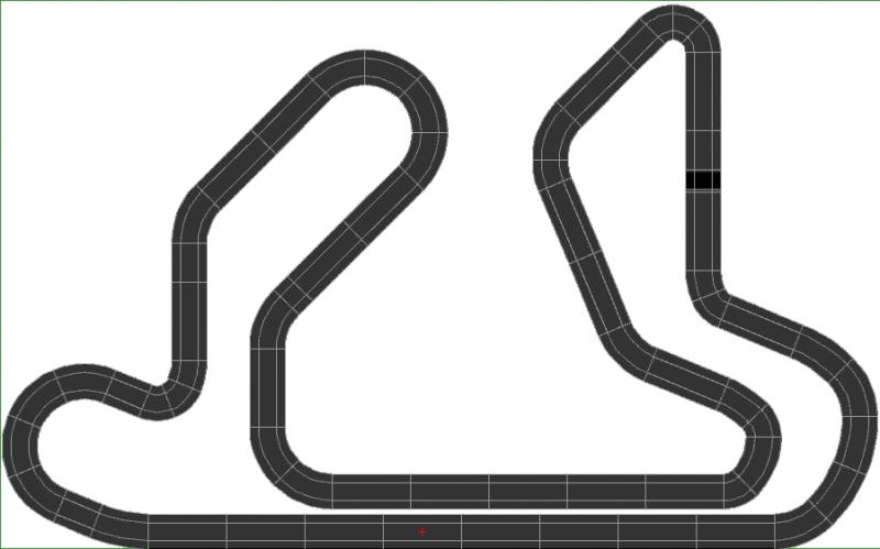 Voilà ce que j'ai fait. Le problème en Carrera est qu'il faut beaucoup de place pour tracer un circuit existant du fait des rayons de courbes. Ce qui donne, pour le circuit que tu me demandes, un encombrement de 10,30 x 4,30 m.