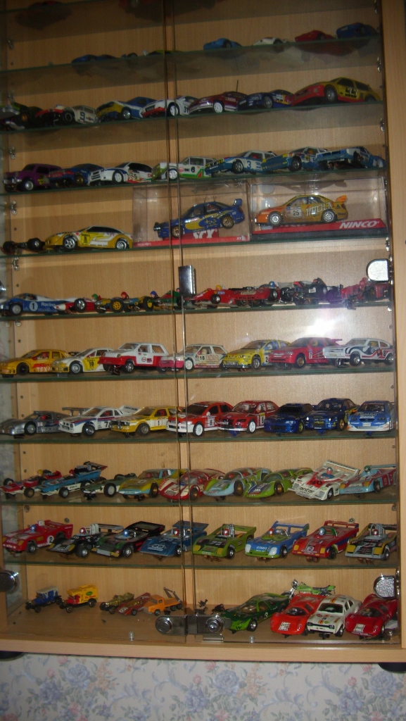ma petite collection persnelle modeste il en manque 5 ou6 ! de plus j'en ai donner qqs une a mes petits neveux auquels j'ai fait un sublime piste a partir d'un coffret sclextric sport pour leur noel il y a 2 ans ils etaient aux anges et ne manquent pas de venir slotter sur le mien des qu'ils peuvent