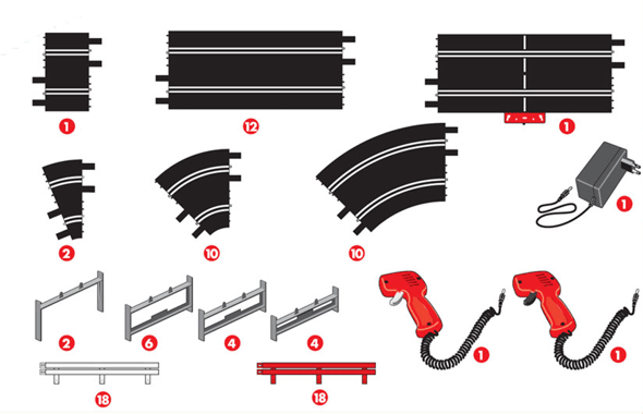 l'un d'entre vous peut-il me dire si ces courbes de mon circuit Ninco Pro-am II sont des R1, 1/2 R1, 1/2 R2, R2, R3. J'ai besoin de commander quelques bordures et je suis un peu perdu... Merci