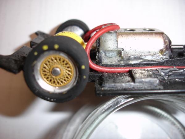 speedy : ben les pneus de ma gt-one, c'est pas glop, ils dejantent, du coup j'ai mis des ninco 20x10 et revus le lestage, 5 grs derriere le guide, 1,5 a la place de l'aimant, et 2x1.5 juste derriere l'axe. ca va bcp mieux, elle est tres proche du record de piste ( a 1/100em seulemment ) mais je suis sur que ca peut encore aler mieux ![]()