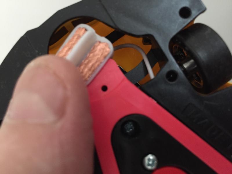 Quant à bloquer ou non le débattement du bras, j'avais initialement la même vision que cousinhub et dernièrement j'ai roulé au club (piste bois plane) en laissant libre le bras et ma voiture était bien plus rapide qu'un collègue qui avait bridé le sien. Je pense que quelle que soit la piste il vaut mieux le laisser libre. Au pire cela ne change rien. Sauf qu'évidemment il faut bien placer les fils: il faut qu'ils soient assez longs pour ne pas tirer sur les œillets lorsque le bras descend et il faut qu'ils reviennent dans leur logement de carrosserie lorsque le bras remonte…
