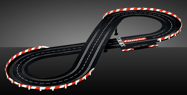 Alors la taille des bordures Carrera c'est la moitié d'un rail, tu double donc ta surface avec les bordures.