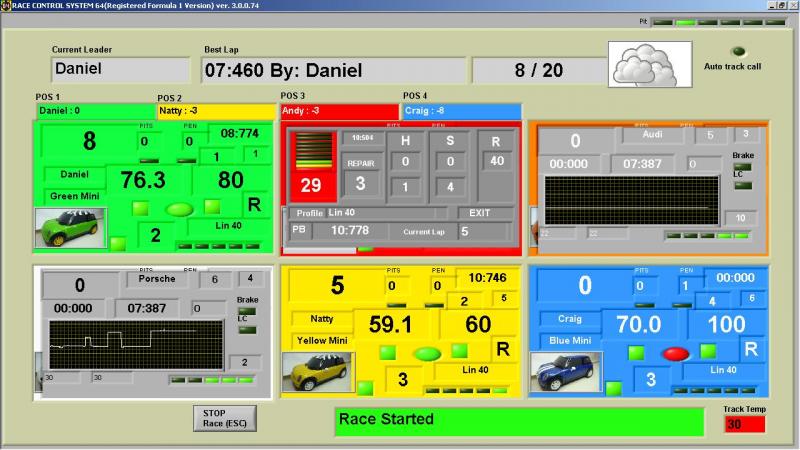 il gère pitstop , essence et pneus moyennant les capteurs ou par simple arrêt dans la pit lane, et "arduino" mais ça dépasse mes compétences