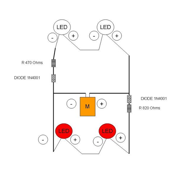 Oui, un pote a "illuminé" une Porsche 962 avec les feux d'une Masérati Scalex (petites leds). Avec des leds de 3mm, c'est impossible : pas assez de place entre les roues avant et les optiques!