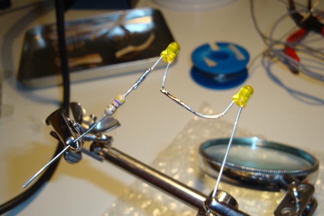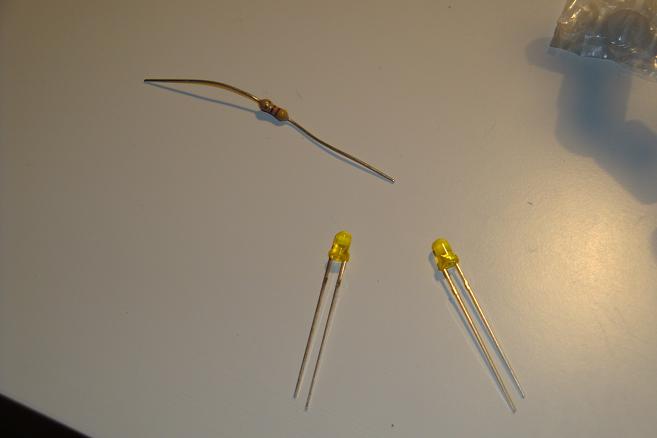1 resistance de 470 Ohms et 2 Leds 3 mm en series