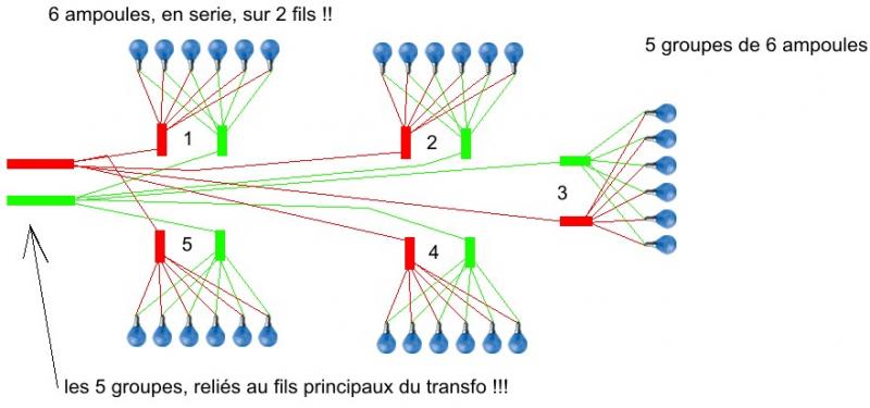 68mA X 30 ampoules = 2,04A. Il te faut donc un transfo développant minimun 2,5A en 12V ; mais pour ce qui est de la puissance de chacune de tes ampoules, la connais tu (1VA,1,5VA,2VA ou 3 VA) ? Message modifié le samedi 5 janvier 2008 à 22h18 par RS Auteur Message RS Lord of the ring