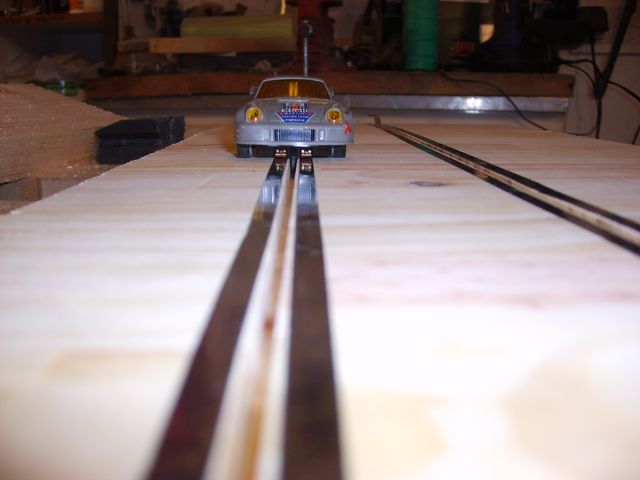 Et en plus ça fonctionne !!!!! Quelques mises au point pour ajuster les niveaux et les voitures passent au poil !!! Le papier d'aluminium ça marche vraiment bien, je ne sais pas pour combien de temps mais c'est économique et ainsi collé ça semble vraiment résistant !