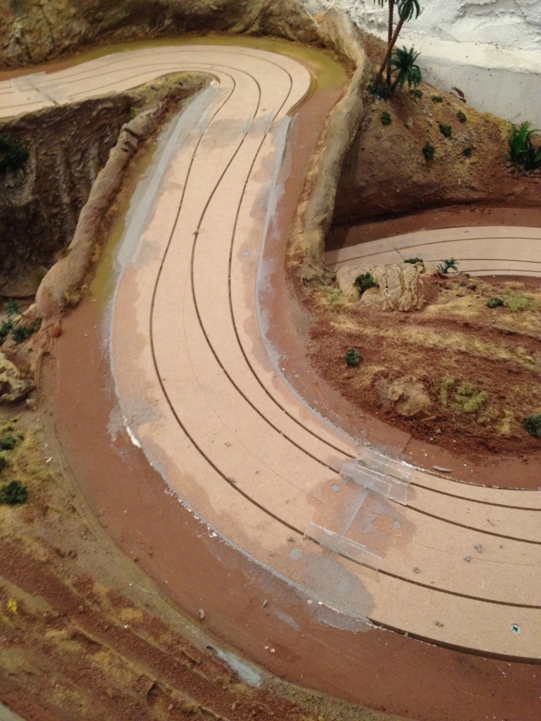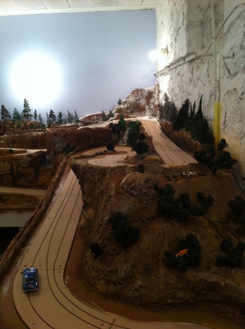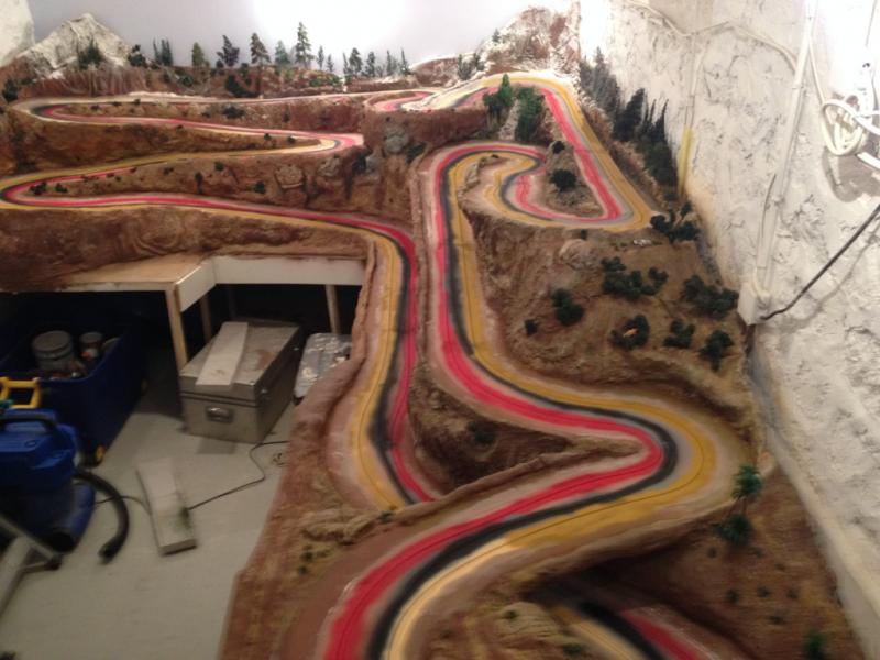 a partir de ce tronçon, on attaque l'altitude,et là la route sera plus etroite, plus defoncée et plus sale ( tout cekla sera travaillé avec des effets de peinture qui ne perturberont pas le roulage)