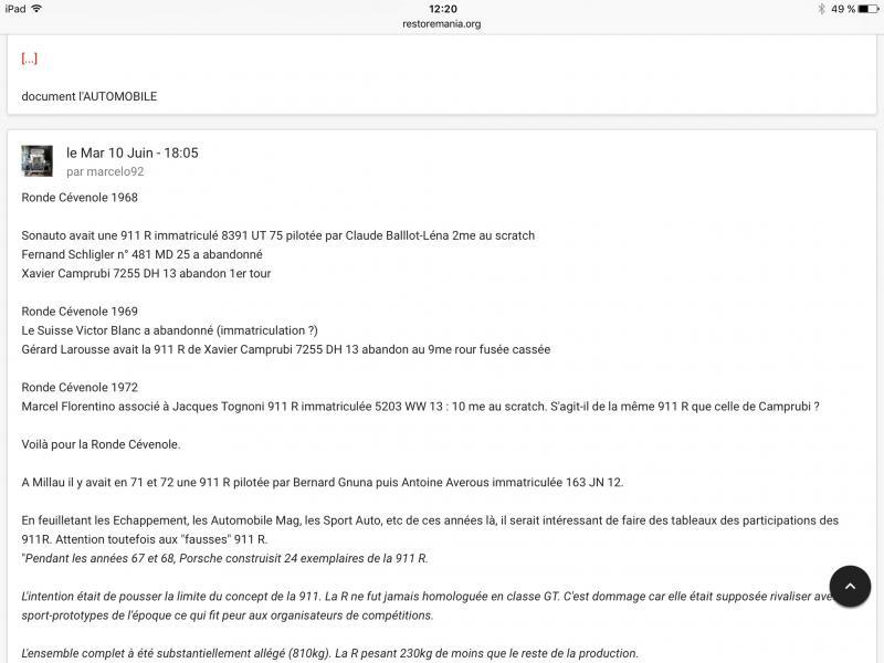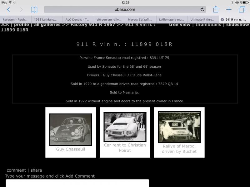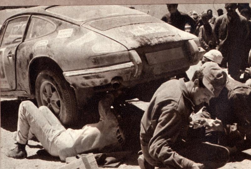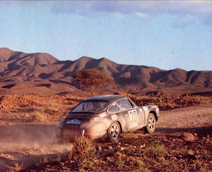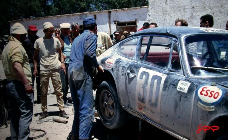 Je vais vous parler de deux belles autos, la 911 R de jean kerguen en 1968, puis la plus modeste 911 S de Raymond touroul en 1971. Toutes deux ont bravé le Maroc et toutes deux ont rallié l’arrivée. Porsche a vraiment couru partout... même au Maroc dis donc!!!