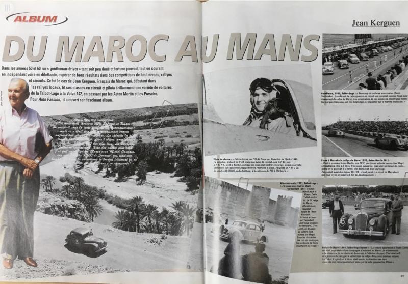 Jean kerguen est beaucoup moins connu par ici. ancien pilote de l’armee de l’air qu’il quittera après la seconde guerre, il passera la plus grande partie de sa vie au Maroc, manifestement il y fera de bonnes affaires et deviendra un aisé gentleman driver. Il s’est offert le luxe de courir de belles épreuves sur de non moins belles autos, Le Mans en aston db3s ou Porsche, des épreuves auto du Maroc avec toujours des aston entre autres. bref, une vie de passionné qu’il a pu assouvir à bord d’engins aujourd’hui mythiques.