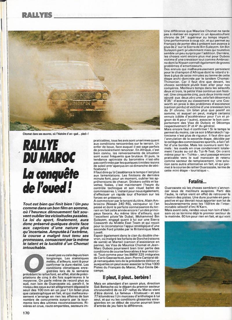 Nous sommes cette fois en novembre 1987, la saison des rallyes terres en France est finie, les derniers courageux vont braver le tumulte automnal du haut atlas marocain.