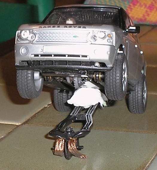 Pour varier les plaisirs j' ai greffé un châssis de VW Touareg SCX sur un Range Scalextric, l' empattement étant le même.