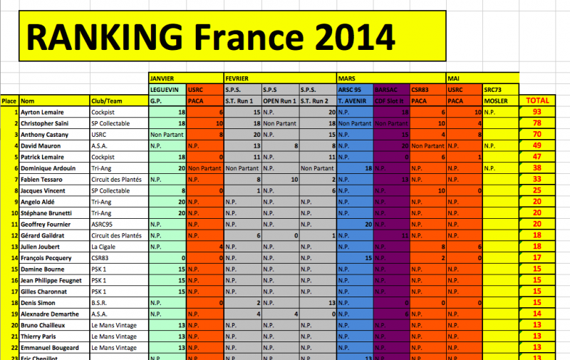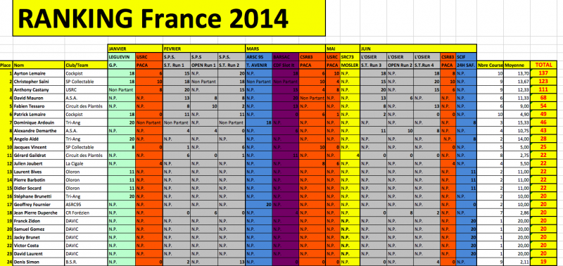 Depuis début Janvier 2014, nous avons recensé ou essayé de recenser toutes les principales course de slot en France aussi bien en analogique que en Digital DAVIC et O2.....