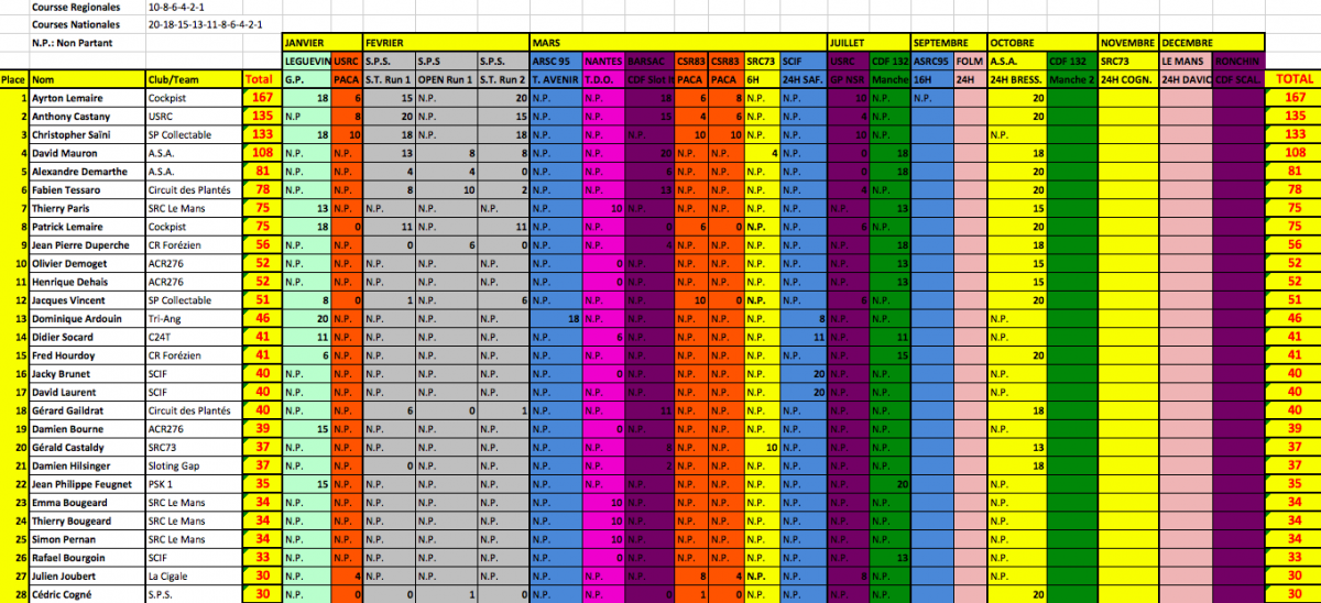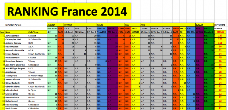 C'est très simple, tous les joueurs ne se rencontre pas tous, voire même jamais et tout le monde fait au moins une course, ce Ranking sert juste à faire un classement national de tous les sloters qui ont participer à une course dans l'année.