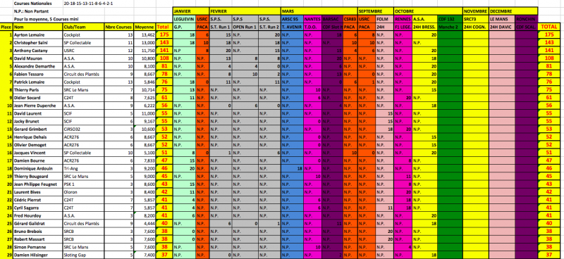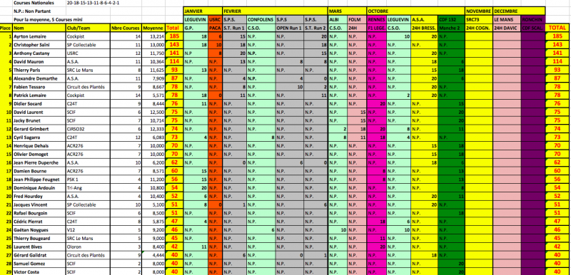 Tout d'abord nouveau barême pour les courses nationales, idem à celui de la F1 2014: 25-18-15-12-10-8-6-4-2-1