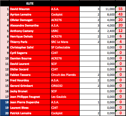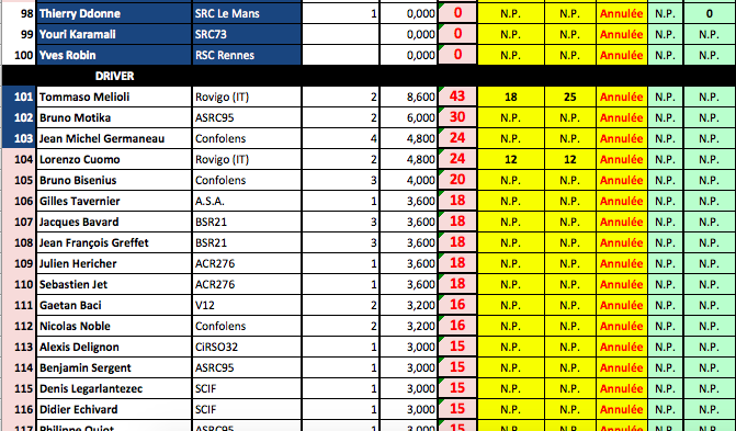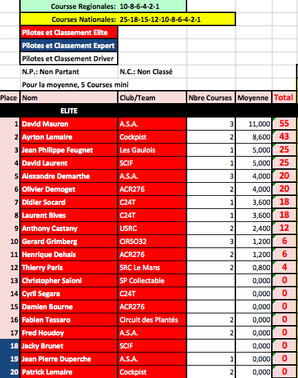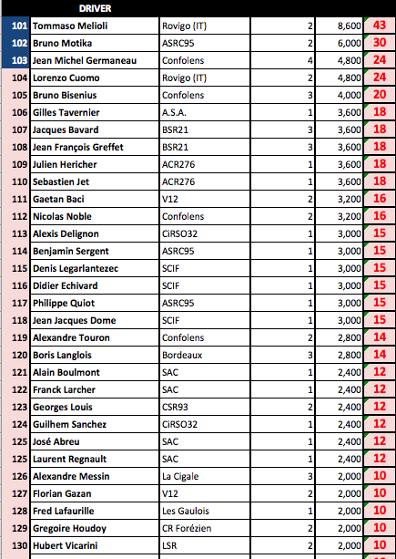 Mise à jour du Ranking après les 24H de Safran 2015.....comme vous pouvez le constater il me manque encore quelques résultats de course comme les 18H du SAC ou encore MMC Vintage.....