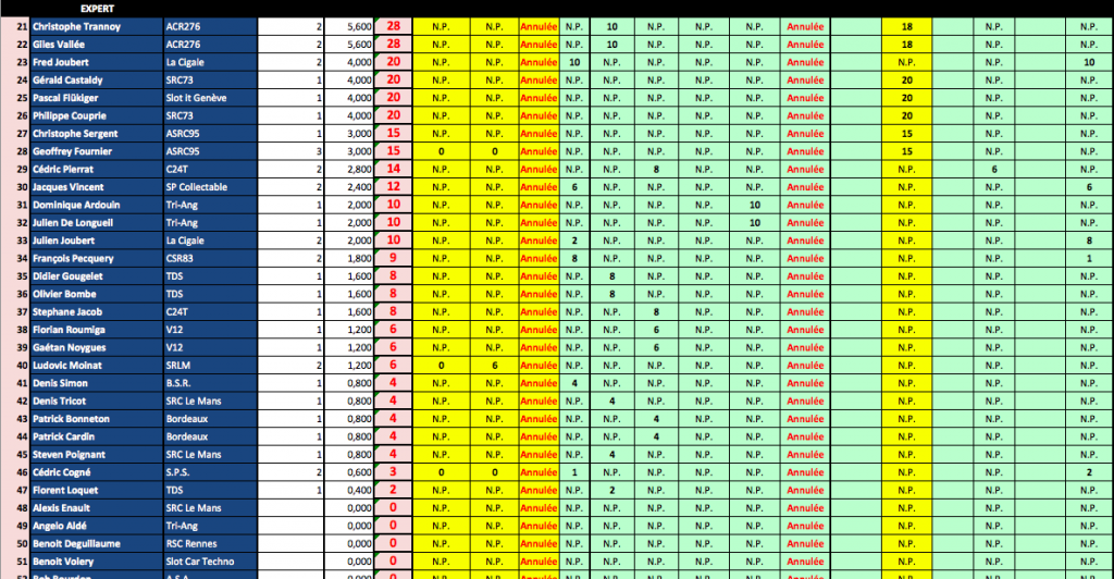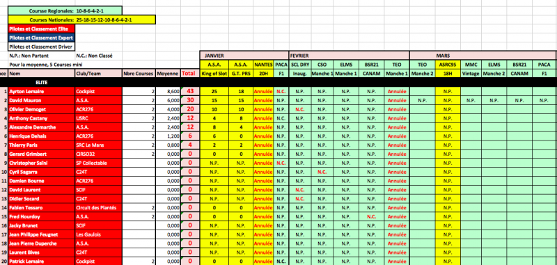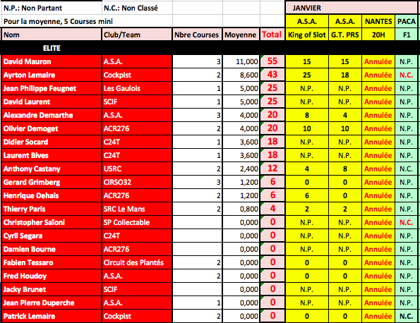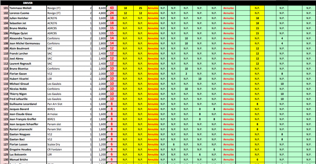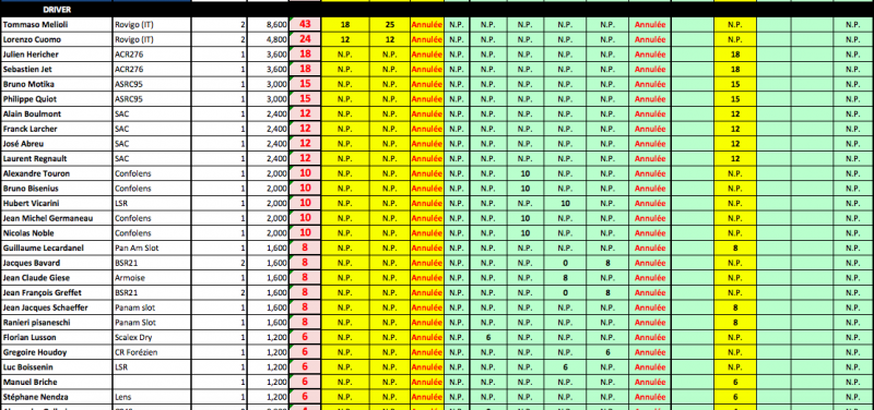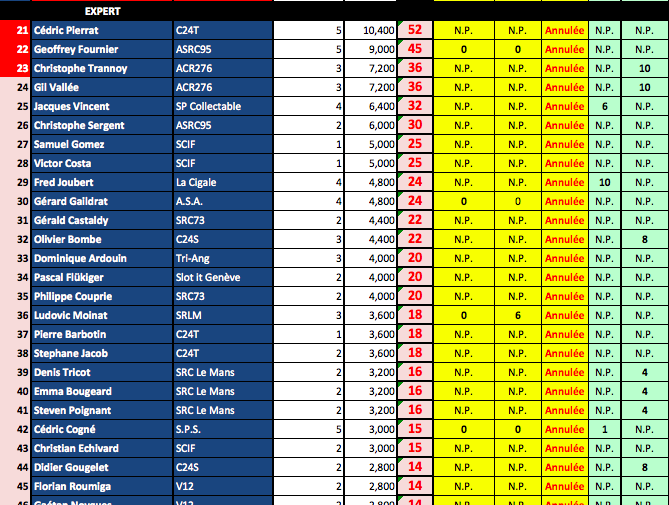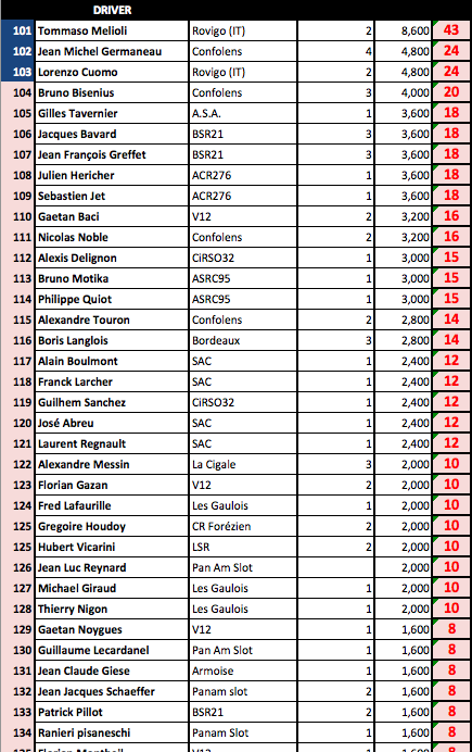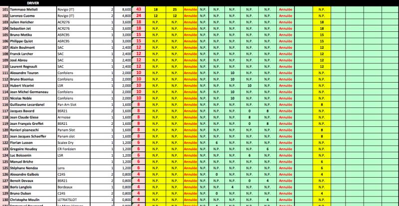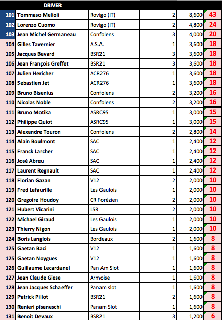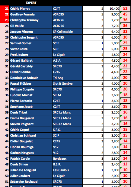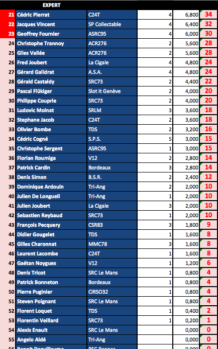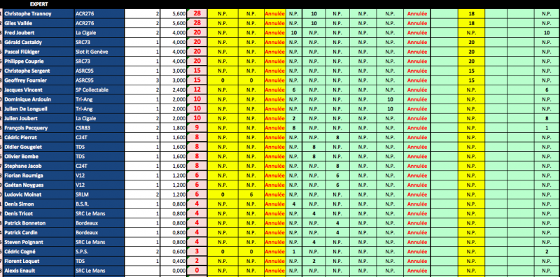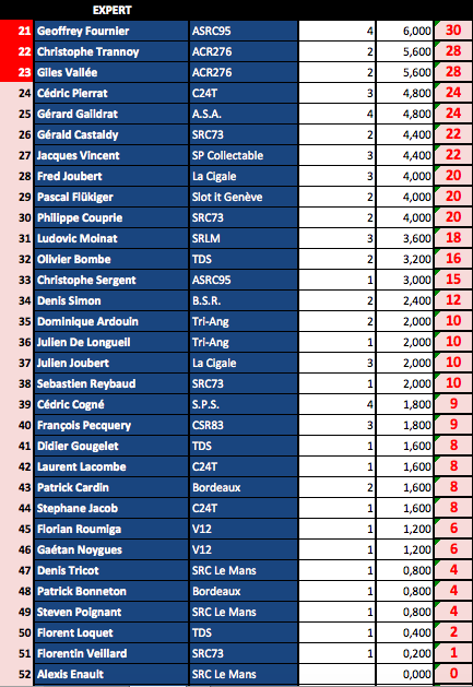 A savoir que ce Ranking sera repris à la fin de saison par la fédération avec les N° de licence des sloteur fédérés....