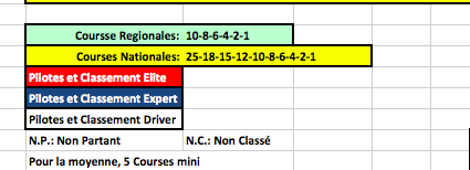Ensuite vous voyez qu'il y a un système de moyenne. cela signifie que l'on calcule la moyenne des points par rapport au nombre de course courue. Cela départagera les égalités à la fin de l'année.