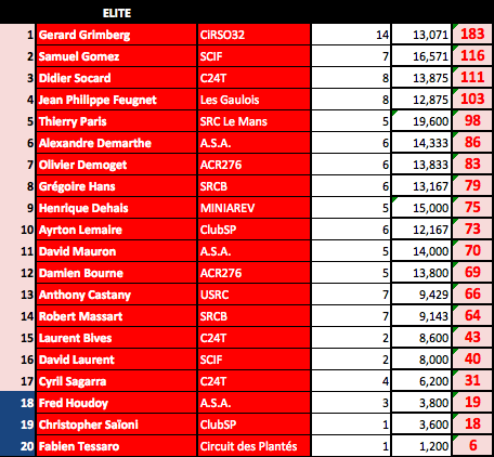 Mise à jour du Ranking après les 24H de Safran 2016