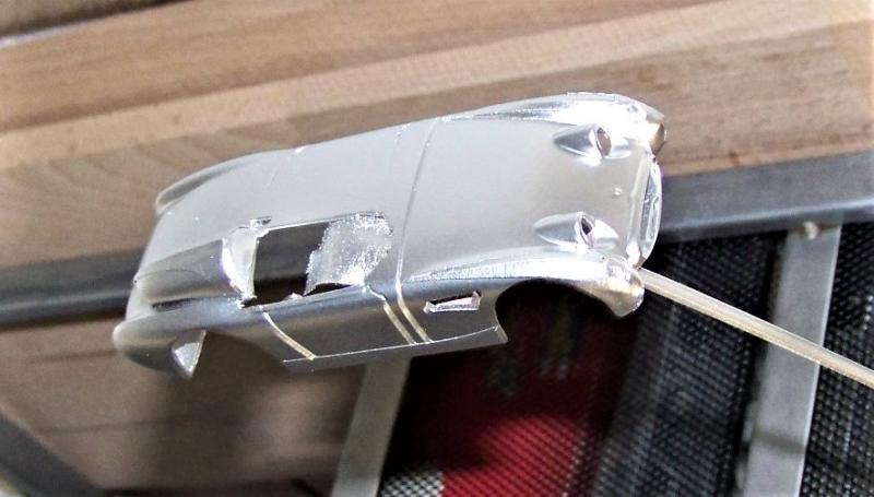 Séchage 3 heures pour être bien sûr, puis une et une seule couche de peinture prétendument chrome. Attention, c'est le moment d'être précis ; pas assez de peinture et l'effet est raté, on dirait au mieux un gris métallisé. Trop de peinture et ça coule. N'oubliez pas cette peinture ne peut ni se poncer, ni se polir, ni se venir. Bref assez de blabal.