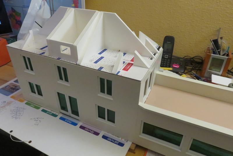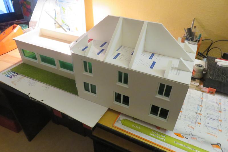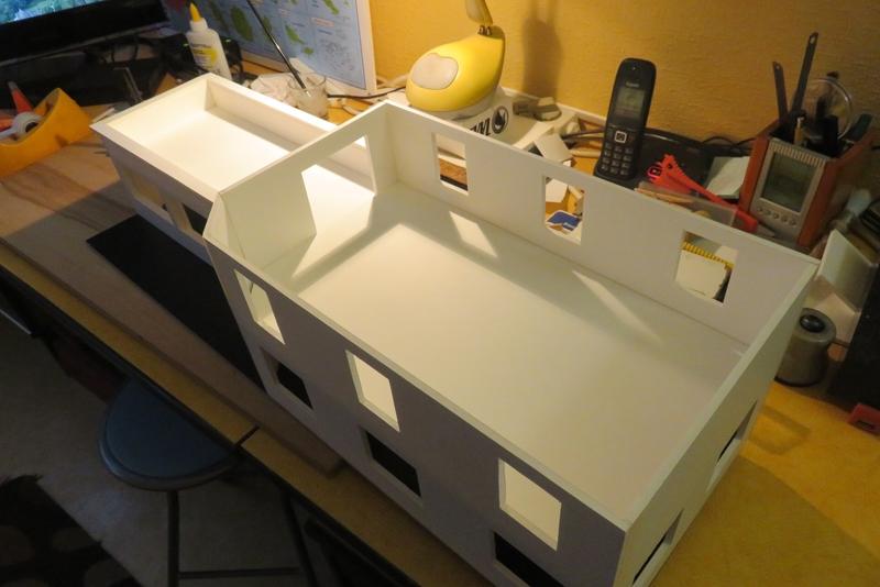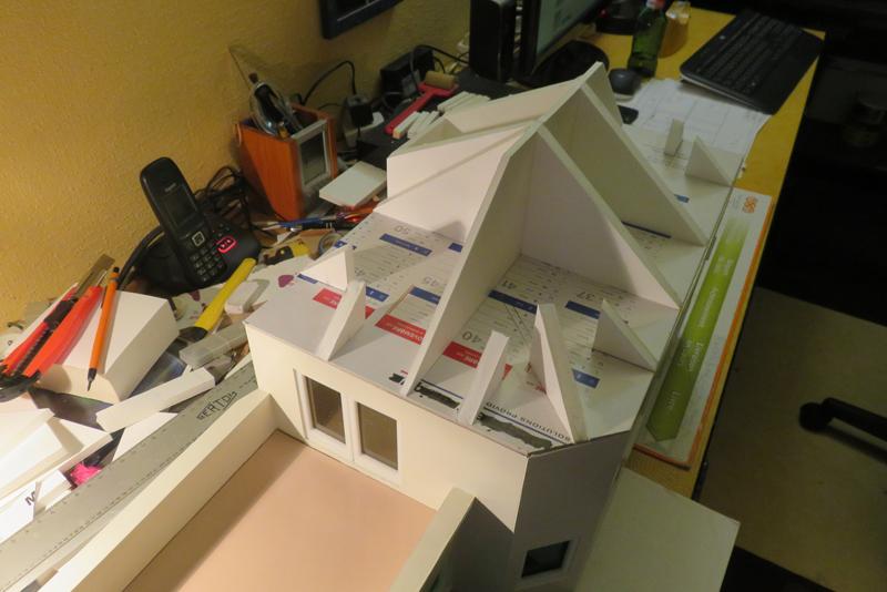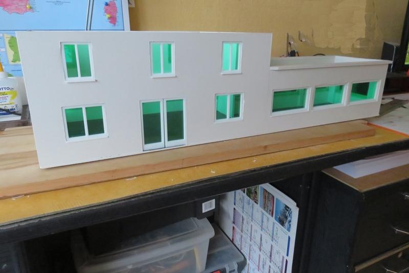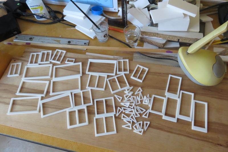 j'explique avec plans: après avoir fait les ouvertures dans le carton plume, je met les fenêtres de Marco Teubar en imprim. 3D.