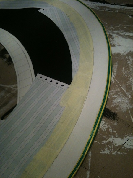 J'ai attaqué le tracé, le masquage et la peinture des ralentisseurs, très chronophage comme loisir !
