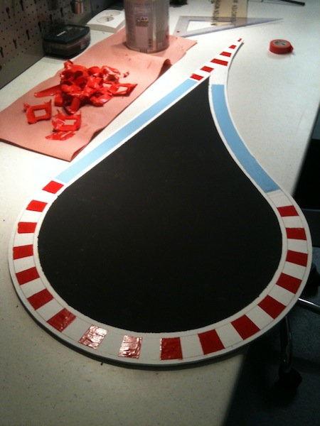 Tout d'abord voici l'outil (DIY) que j'ai utilisé afin d'obtenir un tracé parallèle à la piste pour la délimitation des bordures.
