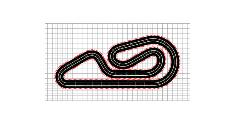- bordures : carrera standard sur l'ensemble de la piste, aussi bien intérieur qu'extérieur de virages et droites.