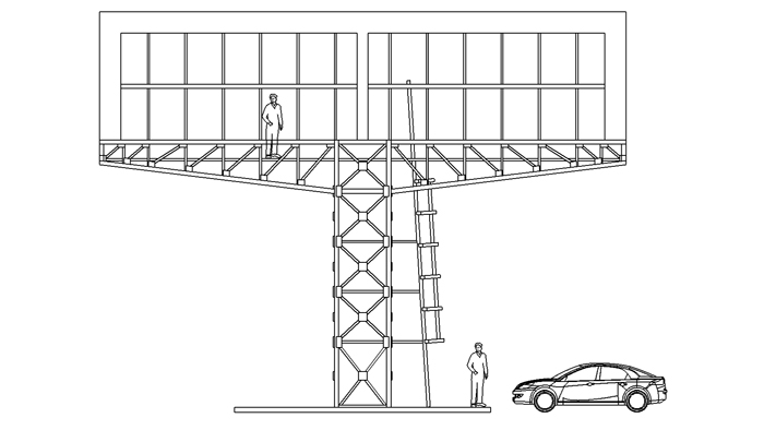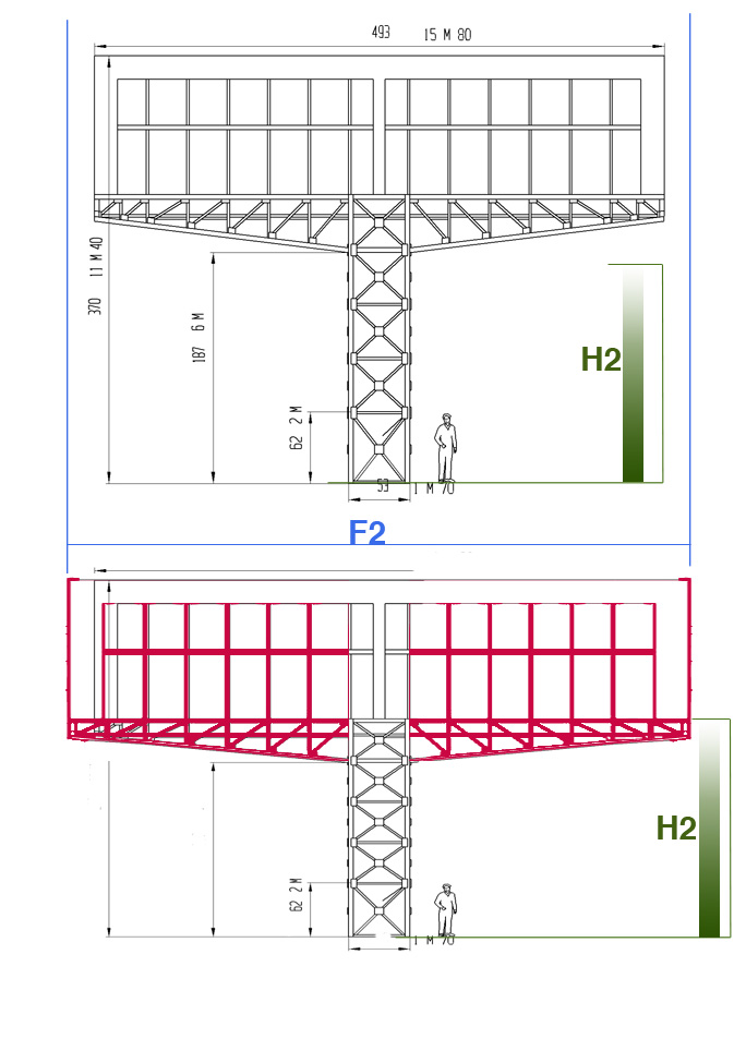 Apres c'est dure d'expliquer.... Entre ton tout 1er dessin et maintenant il semble que tu ai changé la hauteur de ton 2eme palier pour l'affichage. Cela influe énormément sur la surface utile d'affichage. je crois que le tout 1er dessins pour cette partie est bien plus precise en tout cas bien plus logique ou les panneaux avec des n° ( voiture,place,temps) ont la même hauteurs aussi bien alignés sur la rampe basse que sur la haute.