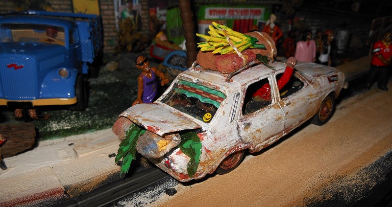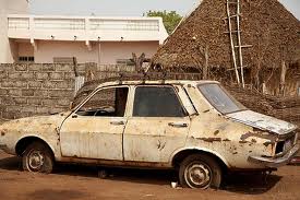 Notez le tableau de bord et la planchette arrière "luxe africain"...avec les rideaux assortis, la VRAIE classe !
