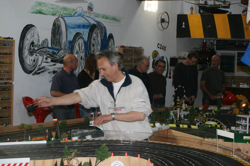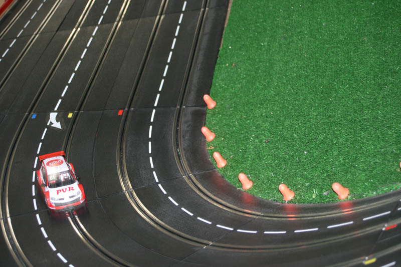 En parlant de banane, j'ai compris pourquoi hier JP et moi avons terminé en dernier, ce n'était pas un problème de comptage au niveau du détecteur sur les pistes 2, 3, 4 et 5 mais comme on remettait très souvent notre auto sortie de piste dans le virage avant les stands sur la voie 1 et juste après l'aiguillage passif menant sur la voie 2, le tour n'était pas donc comptabilisé (je pense que l'équipe à Philvit a dû subir également le même sort) !