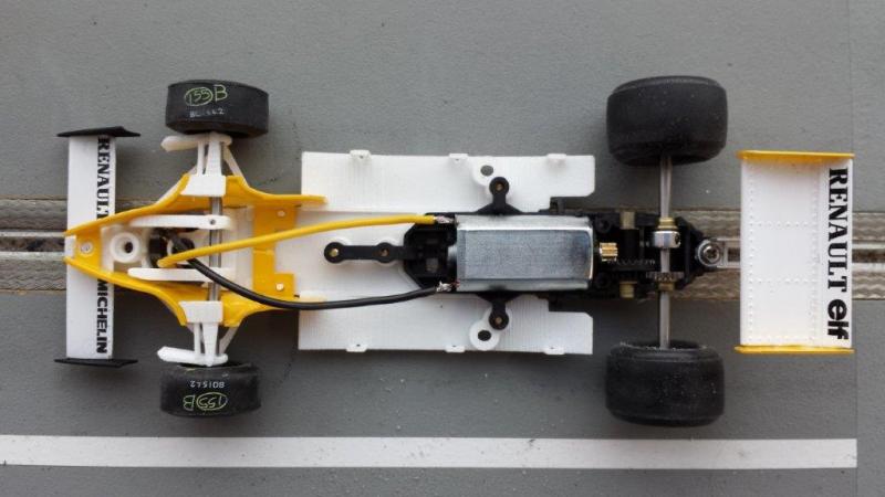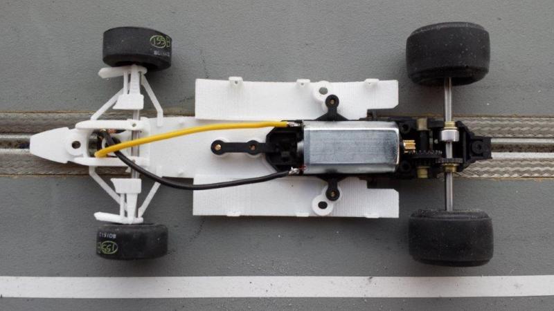 Châssis impression 3D (Conti_Rowland) et mécanique 100% Policar (PDF de 24 pages pour assembler cette petite horlogerie...). Jantes plastique Policar, pneus d'origine à l'avant, Paul Gage à l'arrière, guide d'origine SRC.