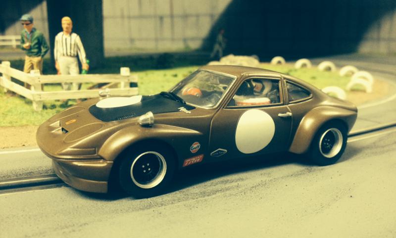 Encore quelques détails à terminée, mais elle est presque finie. Une petite Opel GT Steinmetz de chez Carrera ... initialement récupérée dans un état lamentable et ... en plus avec une très vilaine déco. Décapage, nouvelle déco, nouvel intérieur et quelques détails ...