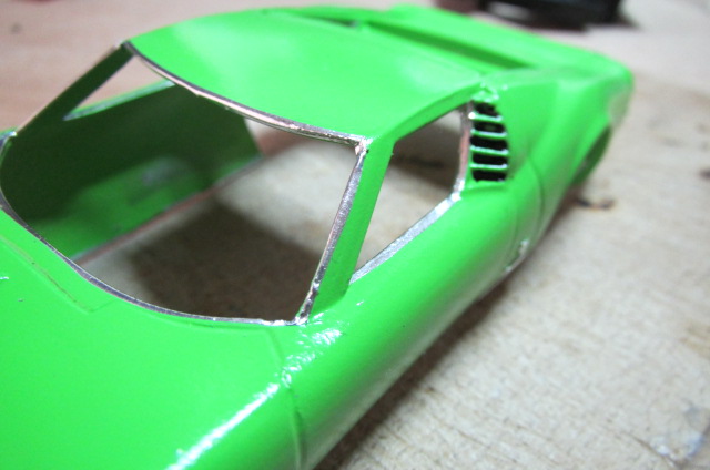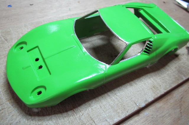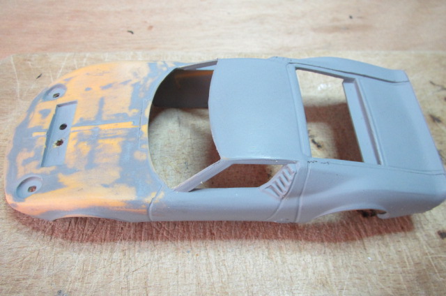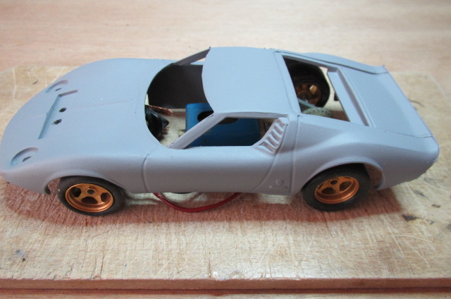 Bon, pour me changer les idées de ma Tyrrell et laisser bien durcir le mastic, je m'amuse à "revamper" un peu une Lamborghini Miura Scalextric (C17) de 1969.