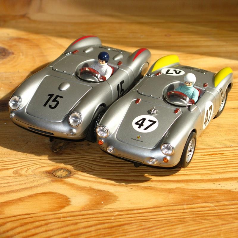 Fausses jumelles ; on remarquera que, par contre, c'est mon frangin (un vrai jumeau de 1953) qui est dans l'autre Porsche (elle, de 1955) ! Vous ne trouvez-pas qu'il me ressemble beaucoup ? À part qu'il n'a pas de cicatrice à l'endroit où on est passé pour bricoler ma vertèbre...