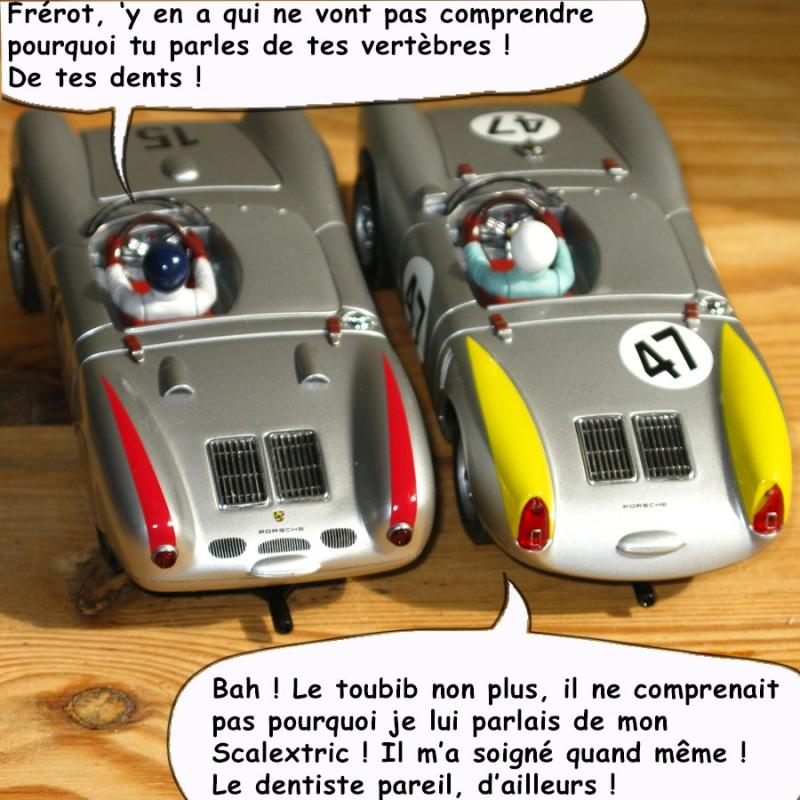 Tout est OK maintenant. Pas les vertèbres ni les des dents, mais la Porsche. Je l'ai faite tourner depuis, une bonne demi-heure, sans souci. Elle est même une des voitures les plus rapides que je possède (accélération, tenue de route). Un régal. Ma vertèbre aussi.