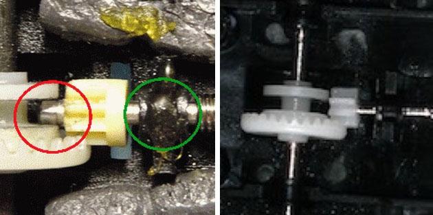En fait — je l'ai compris par la suite — le papier, il s'agissait d'une cale ; une cale maintenue par deux points de colle. La cale devait pousser la couronne contre le pignon. J'imagine une cale en papier entre la dent et la couronne pour croquer les pignons... La cale : Je ne pense pas qu'elle était d'origine, d'usine ; sans doute un bricolage du précédent possesseur de la voiture « neuf, mint in box » ! Ce système débrayait à la moindre accélération, comme ma vertèbre d'ailleurs avant la greffe ou ma dent avant la couronne...