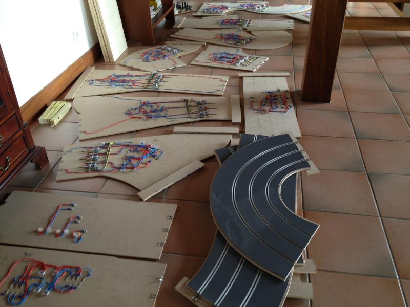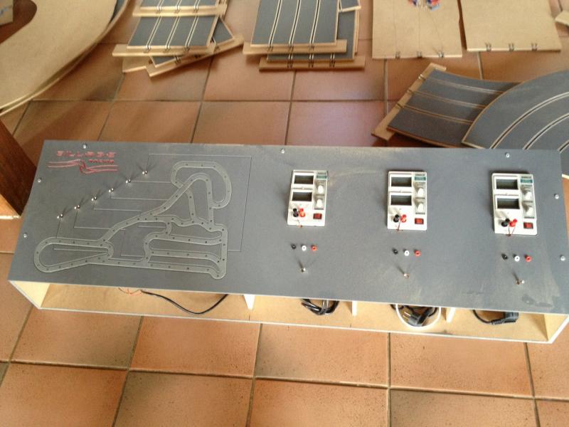 Le circuit est grand ( +- 30 m² ) et très diversifié en raison des différents tracés utilisables que tu vas sélectionner à partir du tableau de commande et qu'il faudra donc mémoriser très rapidement, de plus il va y avoir tout le décors dessus et j'ai donc une question : avez vous prévu ( toi et David ) un système de repérage, par exemple lumineux, pour identifier facilement le tracé choisi directement sur la piste sans avoir à regarder le synoptique....