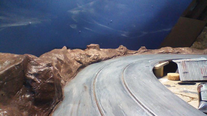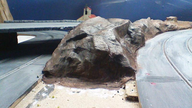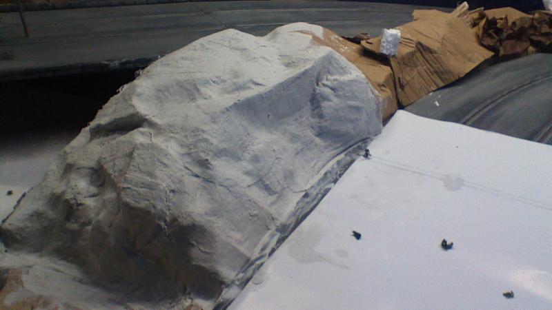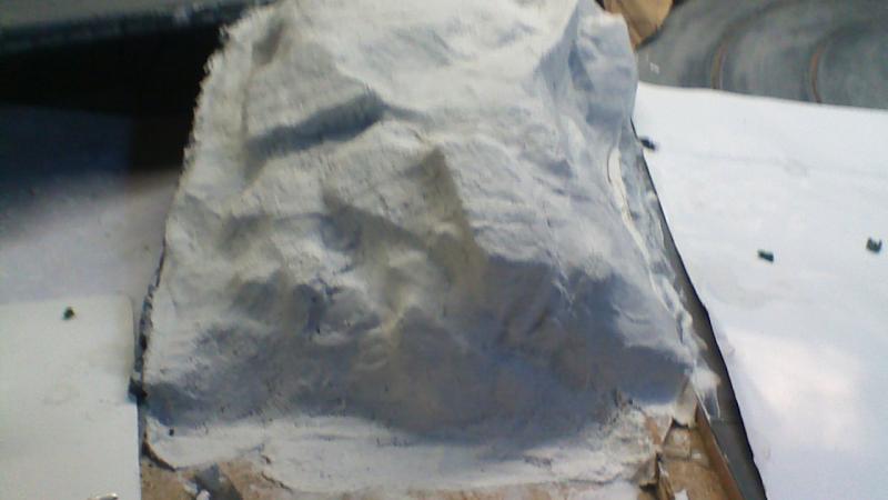ajouter des petits morceaux de polystyrène collés a la colle a bois pour former des roches