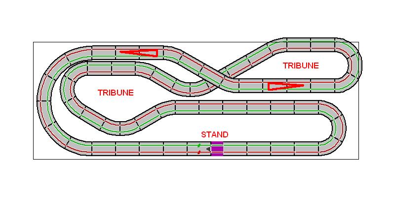 bonsoir! voila après quelques remarques justifiées de Jef je suis enfin sur le bon post voila le plateau fait 1.70x 4.70 j ai mis deux photos de circuit diffèrent dans le mauvais post si toutefois vous pourriez m aider c est du carrera je veux garder une ligne droite avec le grand virage sinon en stock j ai 9 grandes courbes 12 moyennes 12 courtes et 6 1/2 coutes droites un stocks .oui la ligne droite c est pour mettre mes stands et tribunes scalex que j ai toujours gardé merci a tous et comme le dirais Jef bon slot a tous