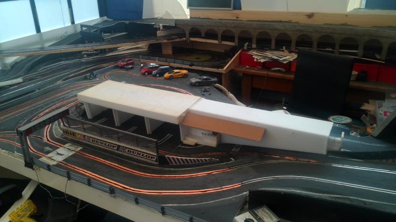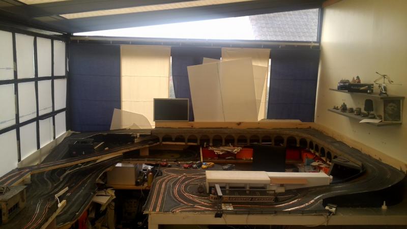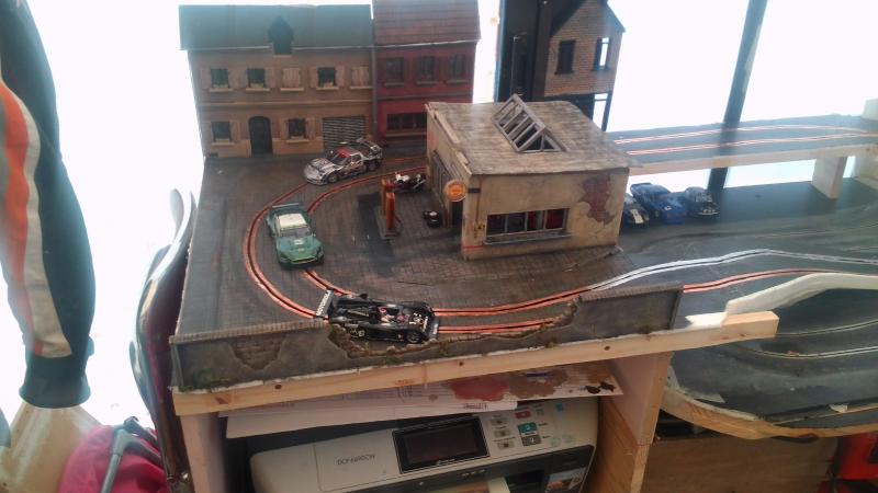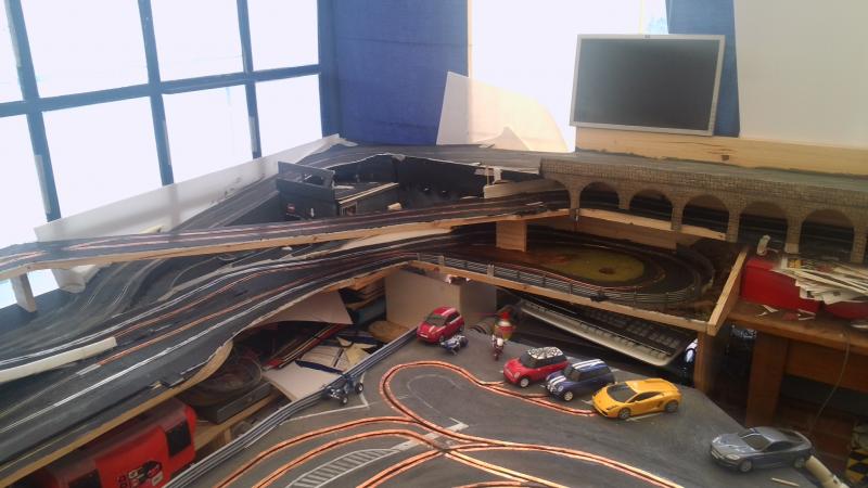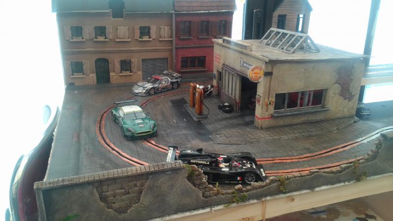 Jadis c'etait un circuit jouef Rallye, aujourd'hui c'est une piste hybride scalex sport et bricolage perso a base de depron de résine et de copper tape.