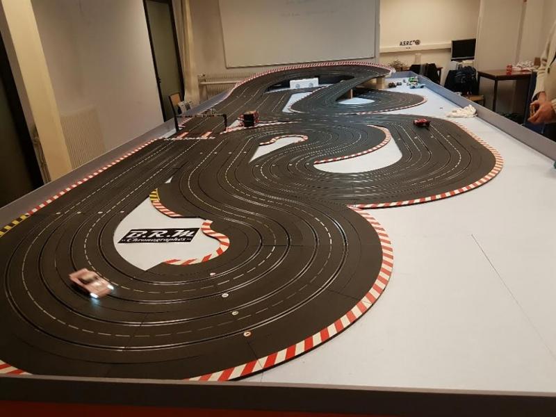 J'ai pour l'instant un 4 pistes d'un peu plus de 27 mètres que je pense agrandir entre 30 et 35m. Je pofine mon tracé au fur et à mesure mais ne l'installant qu'au sol et chaque fois provisoirement, j'ai du mal à savoir si le tracé me conviendra sur du long terme, puisque je ne l'utilise jamais plus de 2 ou 3 jours de suite et n'ayant quasiment jamais tourné sur d'autres pistes que sur les miennes